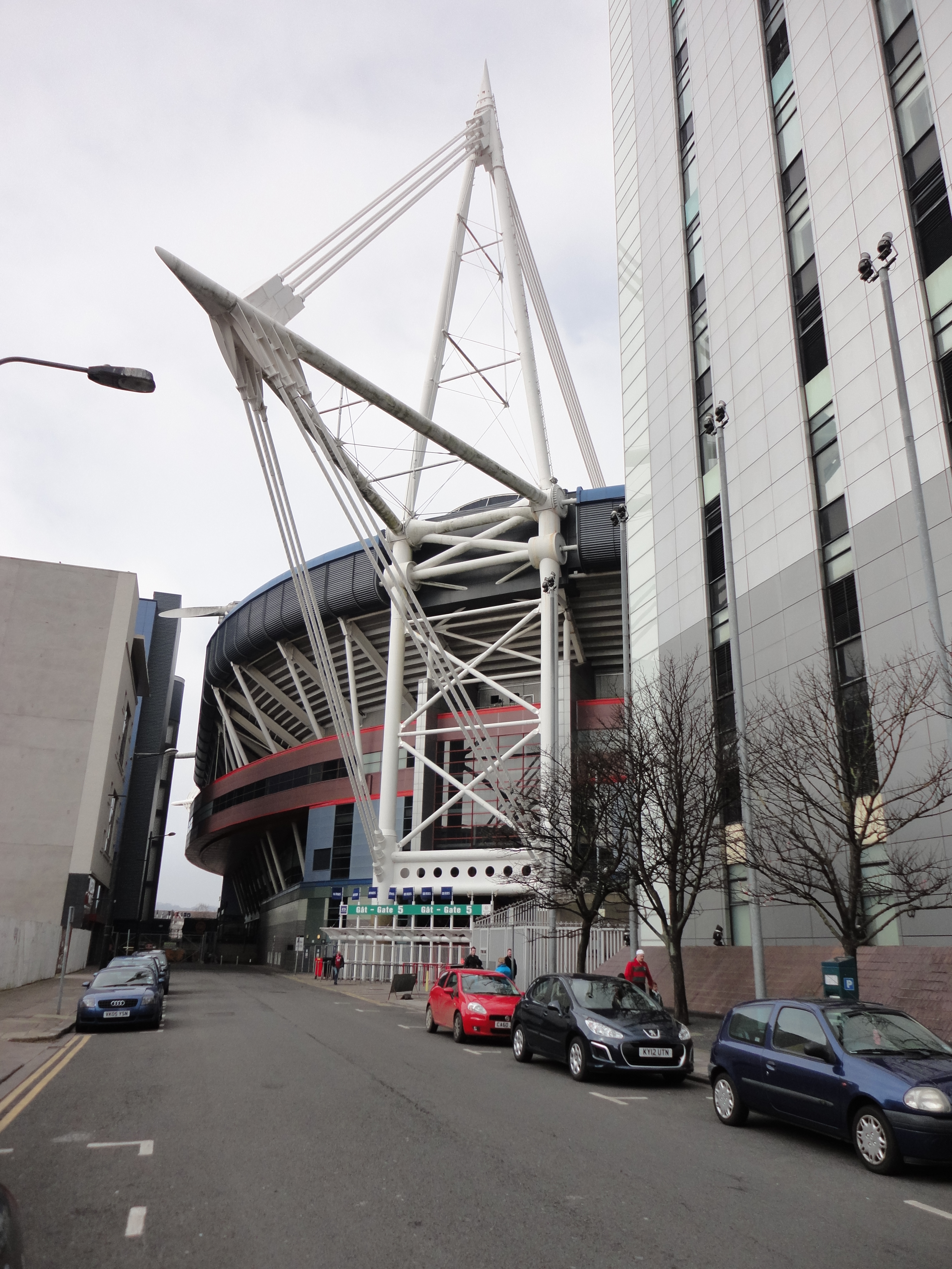 Then down Westgate Street past the Angel Hotel, ast the programme sellers, and into Park Street where the enormity of the millennium Stadium hits you, as it squeezes itself in between the buildings of Cardiff city centre.