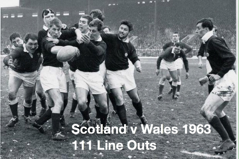 A match between Scotland and Wales at Murrayfield in 1963 included 111 line outs, nearly all of which were created by kicks to touch from Wales scrum half Clive Rowlands.