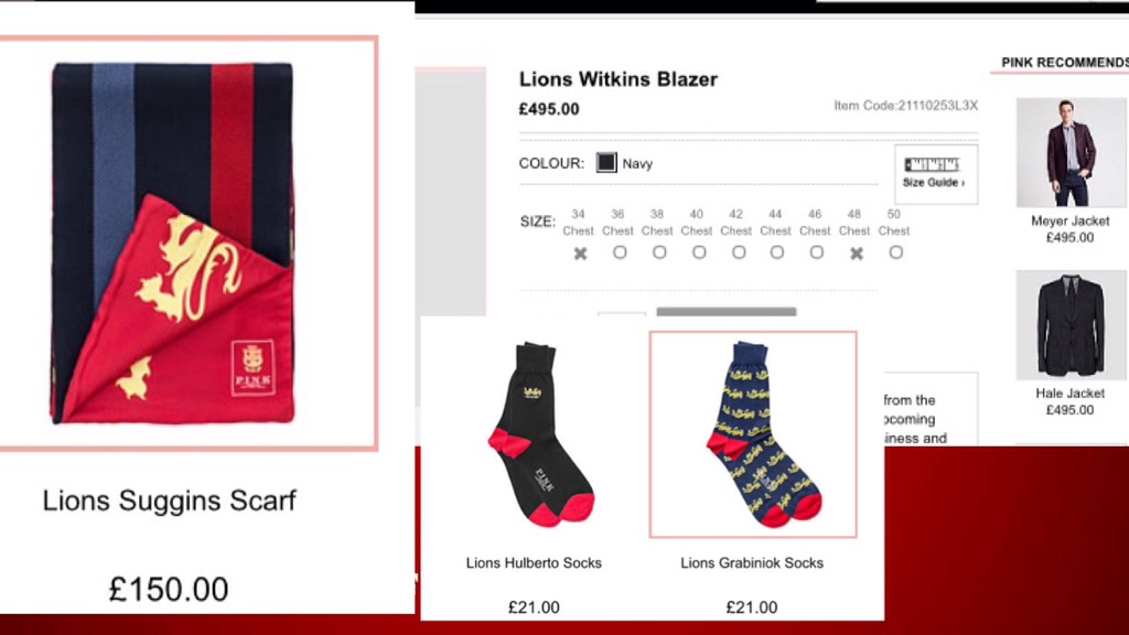The financial side of a Lions tour throws up some staggering statistics, not least the cost of a replica shirt at £120, Which is small fry compared to The Thomas Pink range, an official Sponsor, where you can buy a Lions scarf for £150 or a blazer based on the official Lions range for £495.
