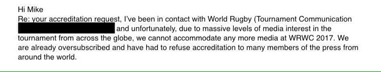 Even those that have been granted accreditation have been told, by Irish Rugby that they may not be able to attend the actual games they are being paid to cover.