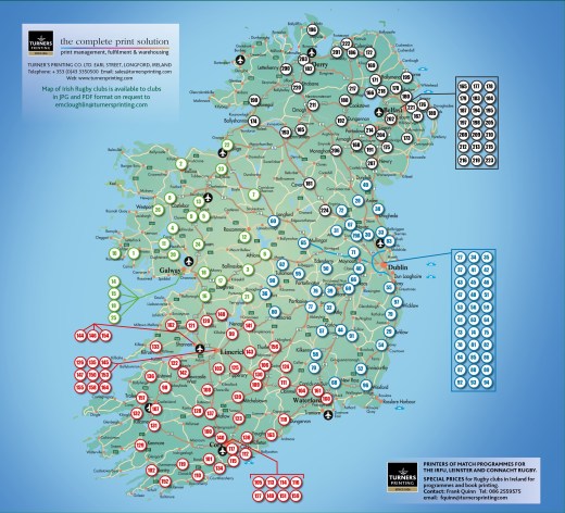 Wherever you go there are a set of rugby posts not too far away, the map below shows, the affiliated rugby clubs of the Emerald Isle, each dot shows not only a team, but also a community, with a sense of unity and belonging.