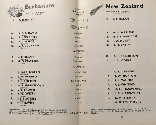 On Saturday I will think back with nostalgic reverence to the seventies, and I guarantee you that somewhere in the Twickenham crowd, there will be a fifteen year old who will enjoy a magical day, that will stay with him of her for ever, such is the magic of a Barbarians v New Zealand match.