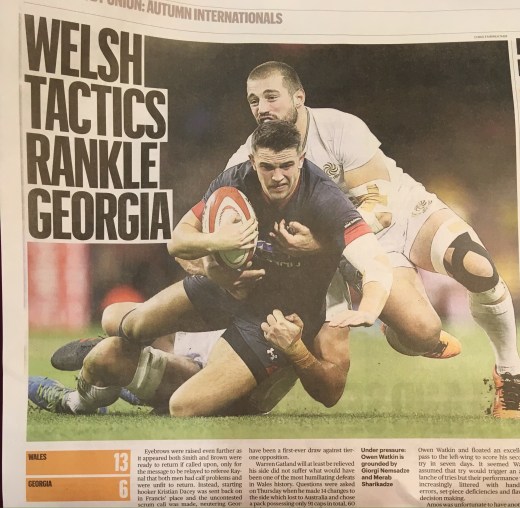 Last Saturday, in a country where rainy nights, and days for that matter, are a fact of life, the Georgian national rugby team played an international match against Wales for the very first time.