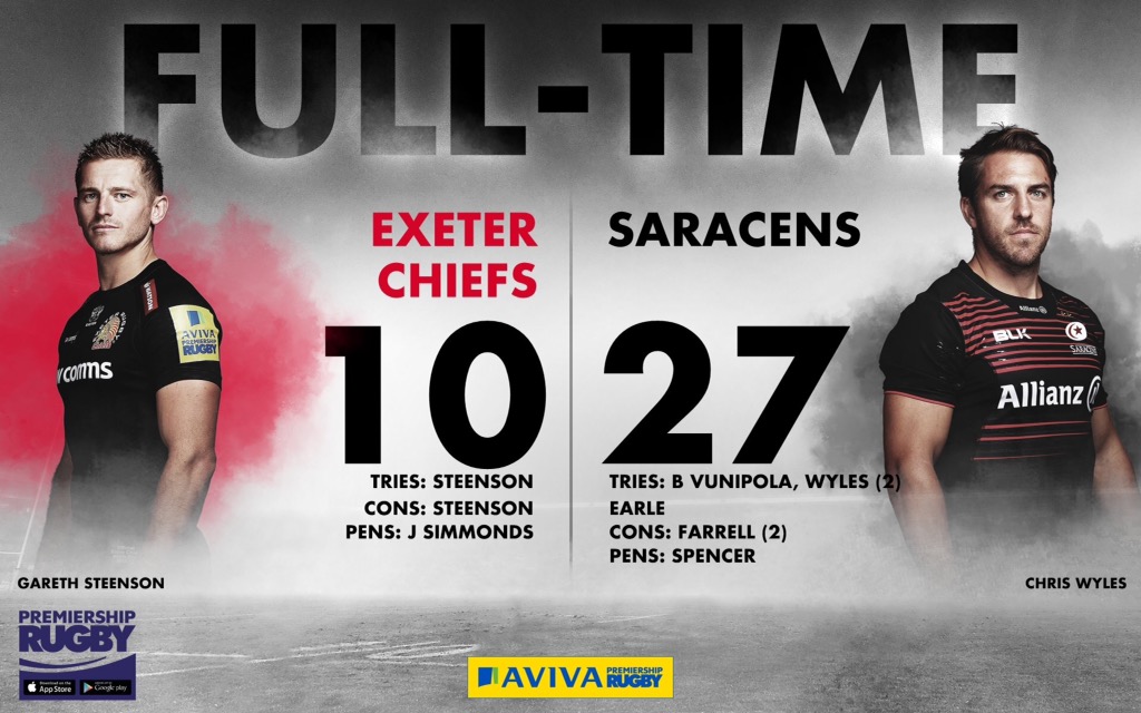 Wyles scored his second try on 47 minutes before Steenson pulled one back for the Chiefs. Earle’s try on 80 mins put the icing on the cake for Saracens.