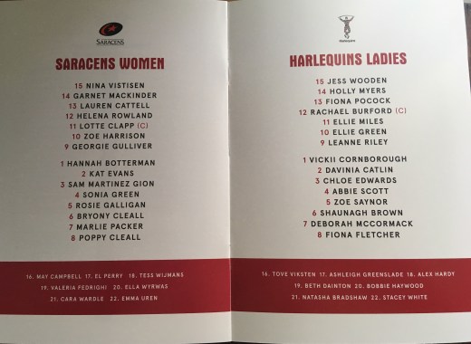 So a year later and some eight five miles further north, from last year’s venue, the 2019 final is just days away one thing that hasn’t changed are the protagonists, Harlequins Ladies and Saracens women.