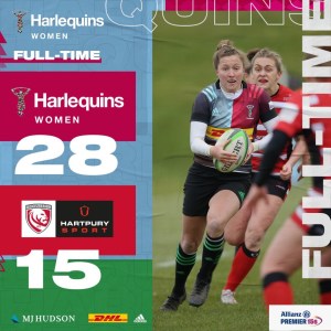 An outstanding defensive display in the final quarter as Gloucester-Hartbury pounded their 22, allowed Quins to apply the sucker punch when, in the 70th minute, a blistering run from Jess Breach left two defenders prostrate on the turf, before she touched down for the home side’s 4th and bonus point winning try.
