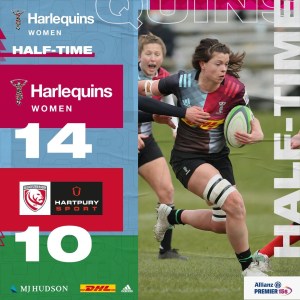 Amy Cockayne’s brilliant individual effort followed by another superb conversion from Green gave Quins a 14-10 lead at half time.
