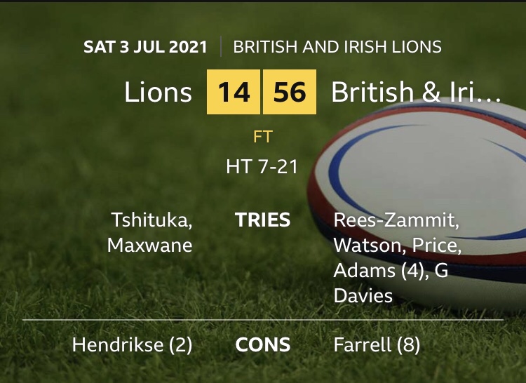 Further first half tries from Scotsmen Hamish Watson and Ali Price gave the tourists a 21-7 half team lead.