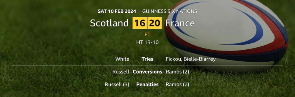 A penalty from Finn Russell took Scotland 16-10 ahead and as errors increased with the conditions worsening it took a moment of magic from the lightning Bordeaux speedster Louis Bielle-Biarrey who touched down after a kick and chase with 69 minutes on the clock.