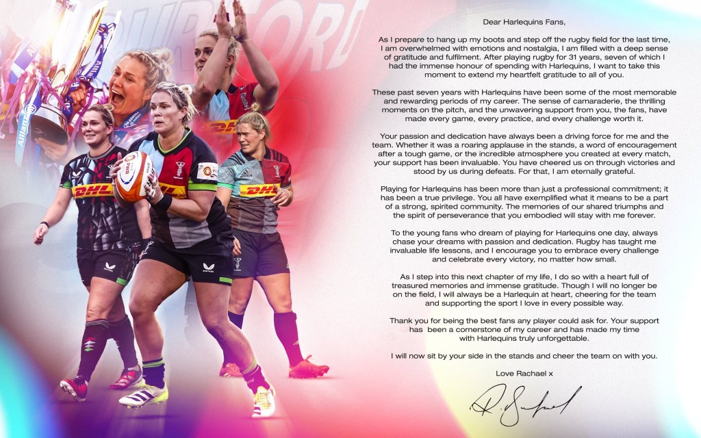 Burf has been a constant at Harlequins. She has been our lighthouse, a shining beacon to cling to when the rugby seas got rough. However bad things got on and off the field, you felt Rachael Burford had a metaphorical arm around your shoulder, you knew things would turn out okay.
