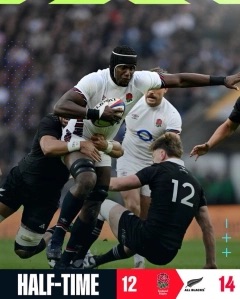 Four minutes into the second half with the All Blacks attacking, a three to two overlap was intercepted by Marcus Smith who ran the length of the field before feeding Furbank. He passed immediately left to Feyi-Waboso to score a try. The 81,910 present greeted with a defeaning roar. Smith’s conversion gave England the lead. Another penalty on the 59-minute mark extended that lead to 22-14.