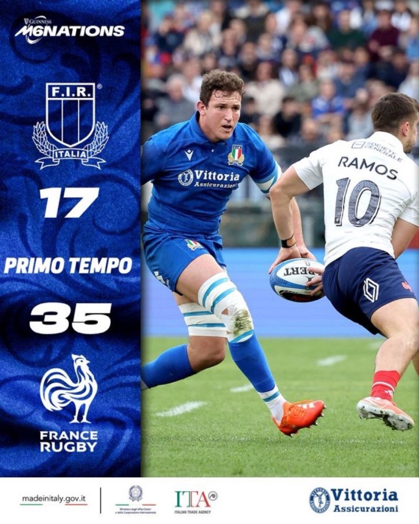Les Bleus never lost the lead again following that score, and with four further first half tries to one by Juan Ignacio Brex for Italy, the visitors had a commanding 35-17 half time lead.