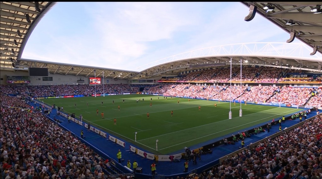 Six miles inland from Brighton’s shingle beaches that once enticed Edwardian day trippers escaping the London smog, England faced Australia in a Pool A match at the home of Brighton & Hove Albion Football Club.