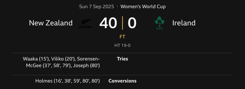 Ireland were well and truly beaten here by a very impressive Black Ferns team. On this showing, they will be a real threat to the Red Roses and anyone else who gets in the way of their World Cup ambitions.