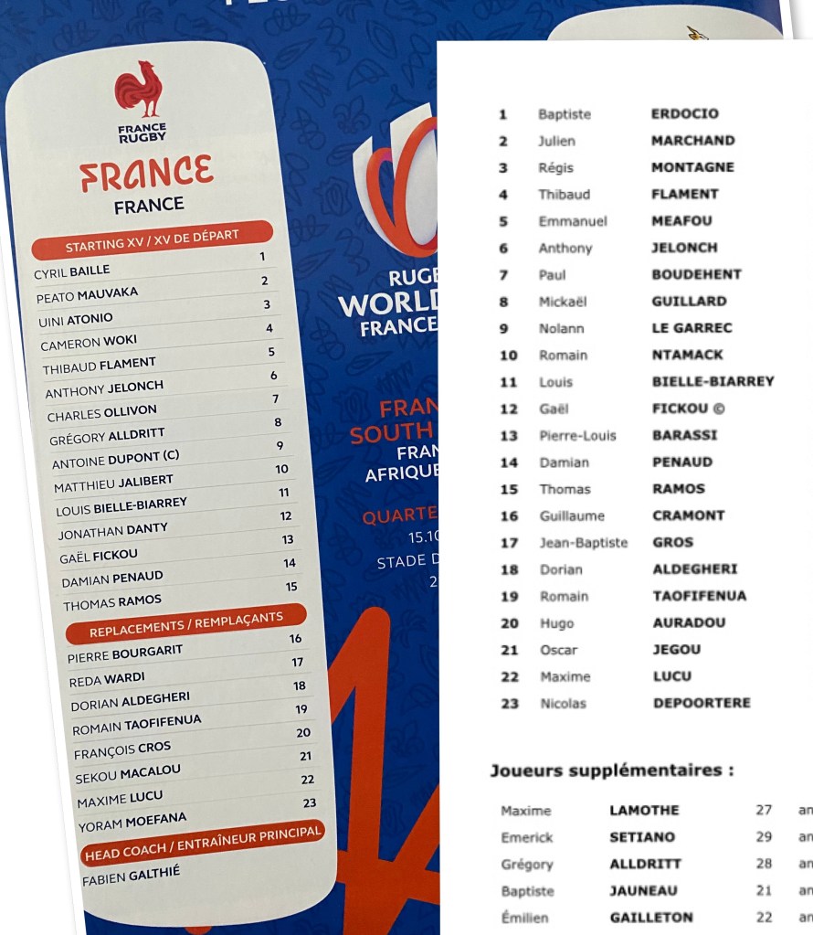 There were six French survivors in the starting line up from that game and there would have been many more but for France’s extensive injury list which includes Peato Mauvaka, Uini Atonio, Tevita Tatafu, Paul Mallez, Matthias Halagahu, Joshua Brennan, François Cros, Antoine Dupont, Baptiste Couilloud, Louis Le Brun, Jonathan Danty, Yoram Moefana, Théo Attissogbe, Gabin Villière, Romain Buros plus Pierre-Louis Barassi, Matthis Lebel, Matthieu Jalibert, Romain Taofifenua and the recently returned Baptiste Serin.