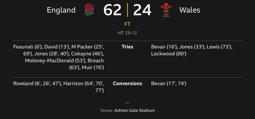 A half-time score of 29-12 was not as bad as many had feared, but thirty-three Red Roses points in the second half made it yet another comfortable win for the women in white.
